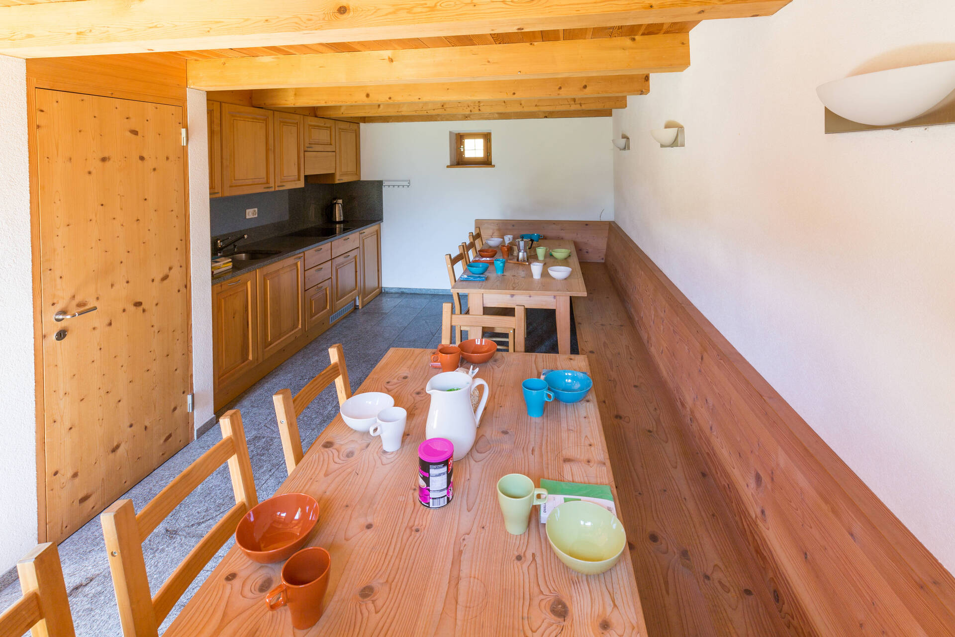An original and ideal accommodation for families or small groups of up to 10 people. On the ground floor there is a kitchen, living room and bathrooms. On the upper floor under the roof there is a dormitory with 10 mattresses. Kitchen towels are provided, for sleeping we put a freshly covered pillow and mattresses. Please bring your own sleeping bag or blanket if required.